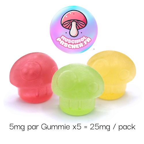 Nos gummies sont fabriquées dans un laboratoire certifié en France, avec une recette 100 % naturelle et un dosage précis de 5 mg de muscimol par gummy. Contrairement à certains produits du marché qui ne respectent pas ces standards, nous garantissons une concentration avec une marge d’erreur maximale de 5 %.